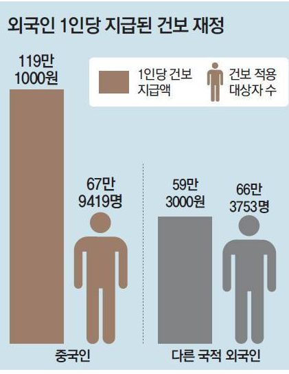 국내거주중국인 1인당 건강보험료 119만 원 사용