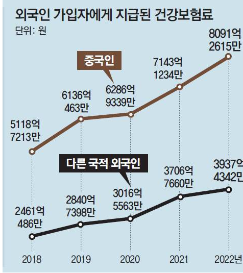 중국인들은 고혈압이나 암 같은 노인성 질환으로 진료비를 받는 비율이 타 국적 외국인보다 특히 높았다. 건강보험 재정 수지가 올해부터 적자로 돌아설 것으로 예상되는 가운데 일부 외국인의 건보 이용 과다를 막기 위한 제도적 장치를 서둘러 만들자는 지적이 나옵니다.